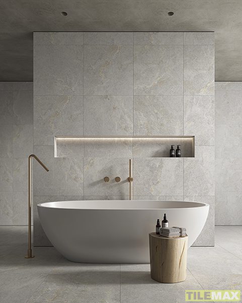 Available in a versatile 600×600mm format, Anthology offers gentle stone-like movement with delicate veining that adds warmth and depth without overpowering the space.