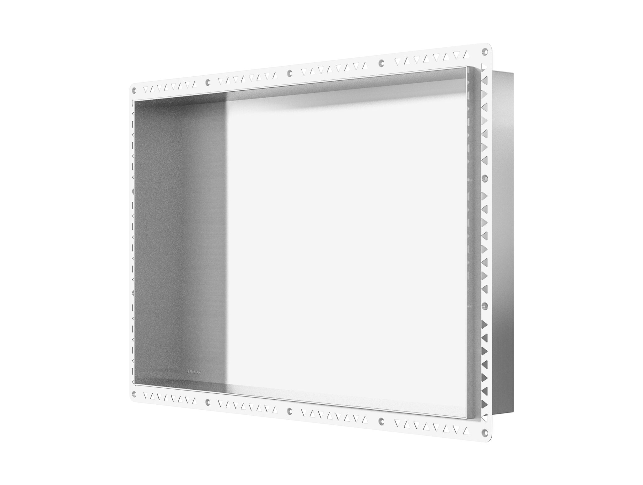 Designed to replace clunky shelves and hanging caddies, it provides a sleek, built-in space to store soap, shampoo, and everyday essentials. Its innovative perforated flange guarantees a strong, watertight bond with waterproof membranes, making installation simple and reliable.