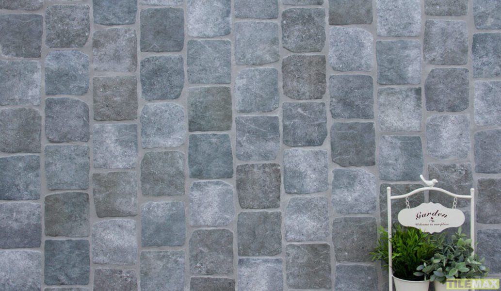Amazing cobble-like porcelain making for an easy laying, hardworking and carefree surface.