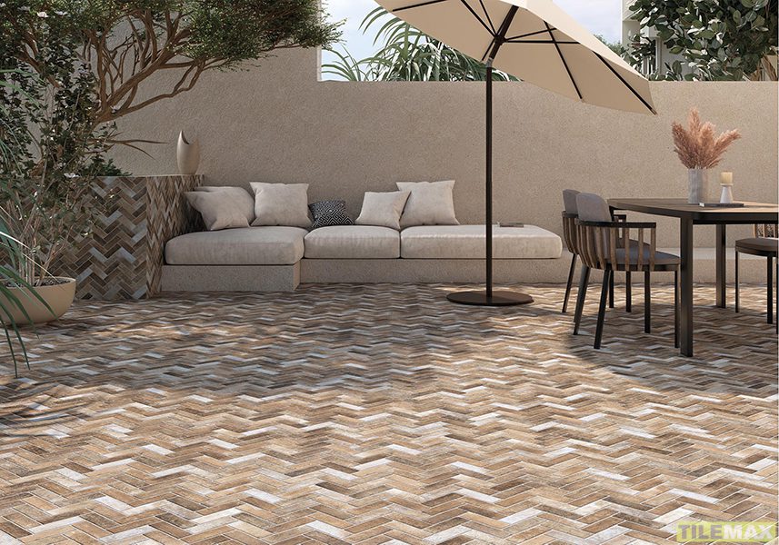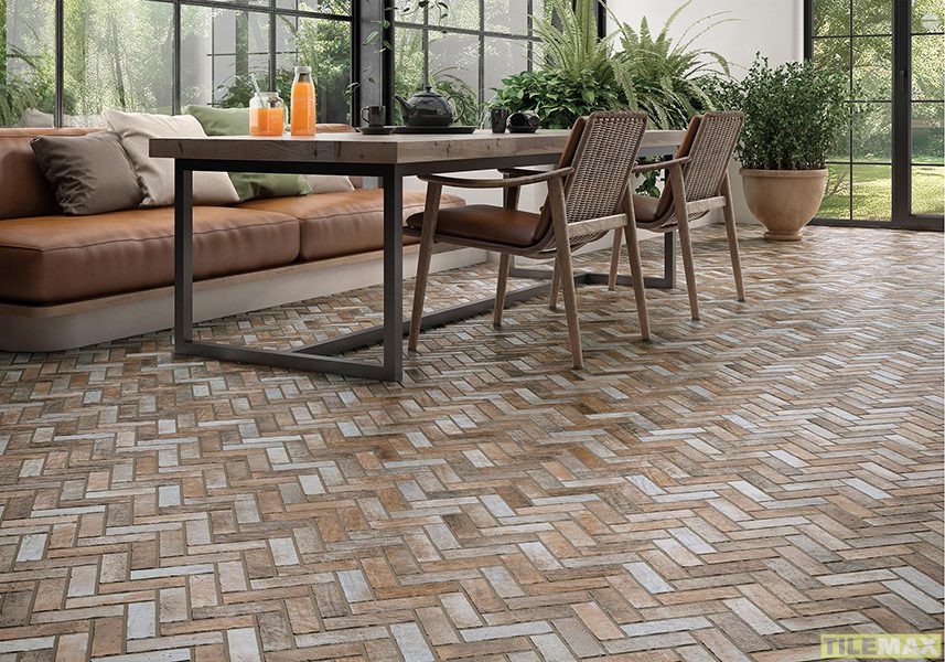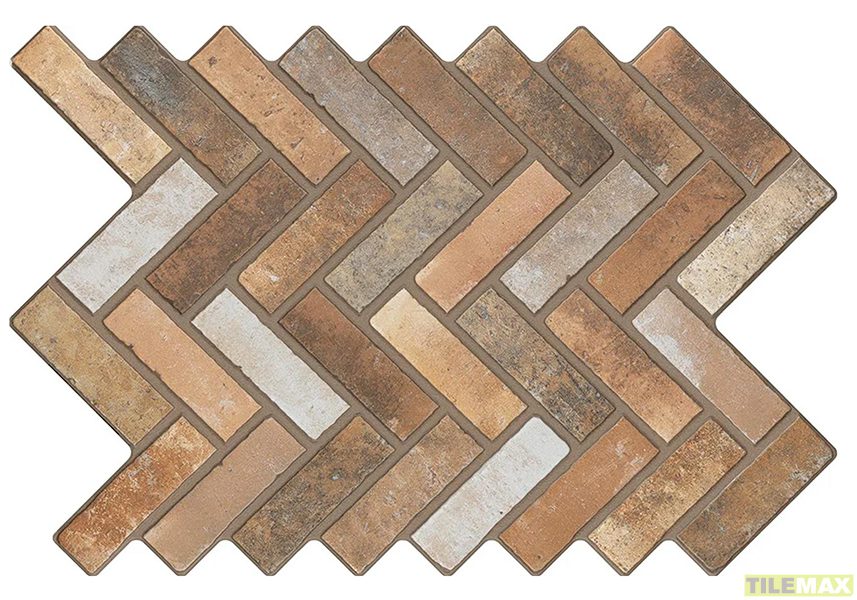 Featuring a herringbone pattern with gentle tonal variation, these tiles combine warm neutrals and subtle colour shifts to create texture.