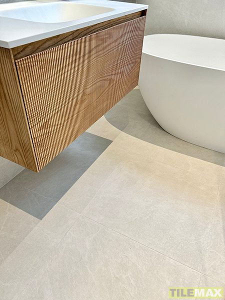 The Summit range is a soft stone looking tile with neutral background tones and subtle veining.